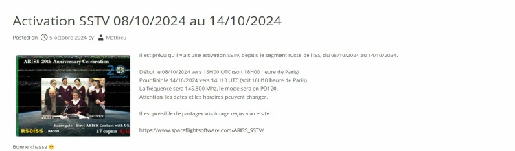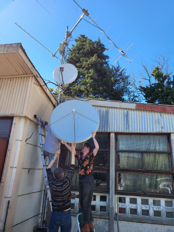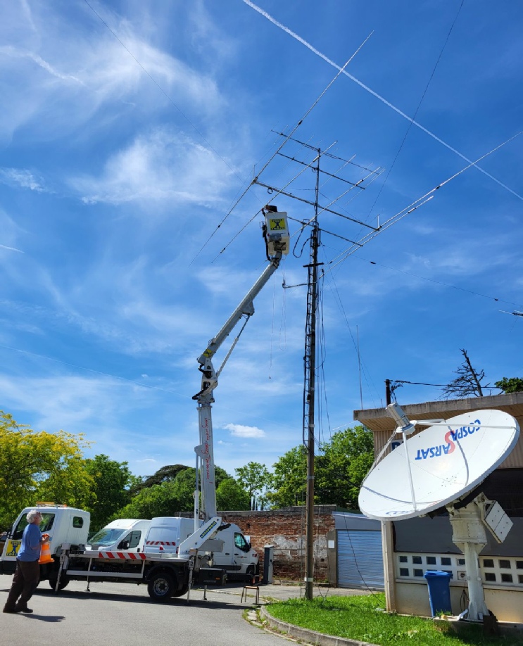– La mise en place de la DATV sur QO100 est réalisée par Mathieu F4FEH, Amaury F4IKG, Charles ? et d'autres OM, cela fonctionne en réception. L’émission est presque prête. La nouvelle parabole dédiée a été posée sur le toit.
