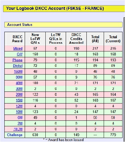 Les derniers concours déca auxquels a participé F5KSE sont le CQ WW SSB (400 contacts) et le CQ WW CW (600 contacts)