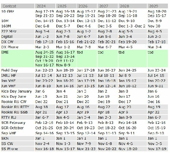 La durée du concours est en pratique de 48 heures, mais disposant seulement de 90 degrés d'azimut pour avoir la lune en vue directe et ceci à cause de son site élevé quasiment à 90 degrés pour ce concours ; cela nous laissait environ 2 heures pour trafiquer soit pratiquement entre 6h et 8h du matin. Le samedi matin donc quelques stations en télégraphie mais mise en route oblige ! nous n'avons pas eu le temps de leur répondre et notre puissance étant approximativement de 200 Watts ce n'était pas suffisant pour se faire entendre. Le dimanche par contre beaucoup d'activité en mode numérique avec diverses variantes de codage, mais nous avons quand même pu contacter et valider 8 stations ce qui est une première pour notre installation. Nos félicitations donc aux valeureux techniciens qui ont pu mettre au point cette station EME et remerciements aux OM et YL pour, via leur cotisation annuelle, avoir financé cette réalisation. (Rappel : la station comme l’ensemble des moyens d’émission du Radio club sont accessibles à tous les cotisants, venez ! !) Dans le futur pour avoir accès au mode CW voire BLU il faudra augmenter notre puissance ou agrandir la parabole, ce qui est peut-