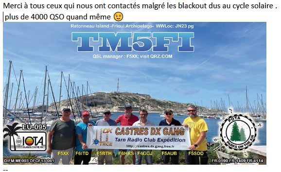 – RSGB IOTA : Nicolas F4HCG 82 QSO, expéditions, on continue à remplir le diplôme des îles pour le Radio-