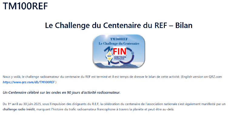 TM100REF résultat : 8963. Plus de 9000 QSO réalisés dans le département 31. Très bonne participation du département 31. Les bandes du 80 M au 160 M ont été utilisés