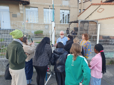 passage de l'ISS en prévision du contact ARISS prévu le 19 mars2026 entre la spationaute française Sophie ADENOT et une école aux USA (via la station italienne télébridge IK1SLD) quand m'est venue l'idée de partager cette écoute. J'ai été autorisé à installer une modeste station de réception à la Maison des Citoyens de Pibrac et à poser quelques affichettes annonçant l’événement. Je m'y suis pris un peu tard mais le matériel à mettre en œuvre était simple, de plus Pierre F6IJI est venu avec un équipement de secours pour le cas où... Un mat en fibre de verre, une verticale VHF, un pocket et la voie descendante de la liaison arrivait confortablement. Le WX nous a permis de nous installer à l'extérieur.