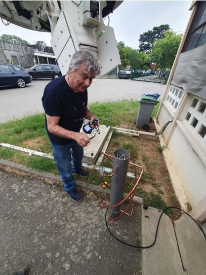 – La mise en place de la DATV sur QO100 est réalisée par Mathieu F4FEH, Amaury F4IKG, Charles ? et d'autres OM, cela fonctionne en réception. L’émission est presque prête. La nouvelle parabole dédiée a été posée sur le toit.