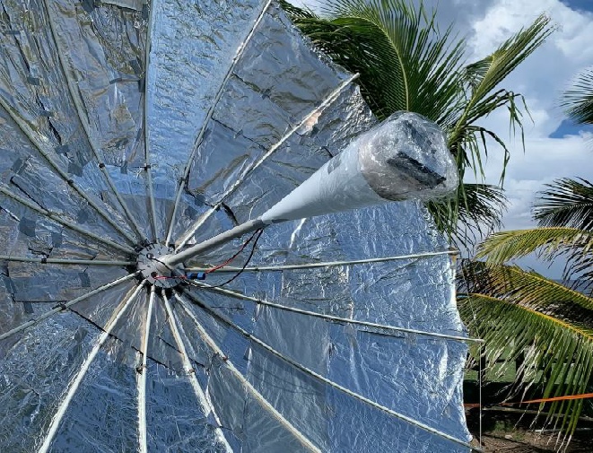 Photo jointe de l’évolution du prototype qui permettra de replier les éléments pour le trafic en rando, autre activité de Mathias.
