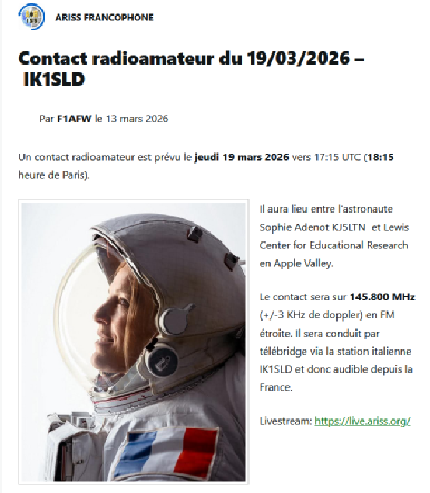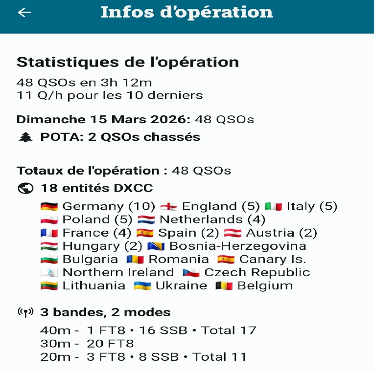Ne pas oublier aussi la sortie F5KSE/P du 15 03 2026: animation POTA ( voir suivi des infos sur le site REF31 Accueil )