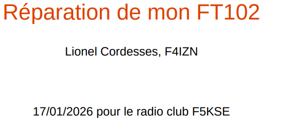 09/01/2026 Au menu de la réunion du 17 une présentation méthodique du dépannage d’un transceiver
