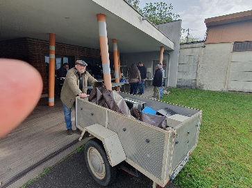 Finalement tout est rentré dans l’ordre et nous avons pu à l’aide de quelques viennoiseries réconfortantes installer le vide grenier à l’abri heureusement. Après quelques échanges de « merveilles » l’équipe DATV à commencé à installer la liaison hertzienne entre la salle de conférence et le radio club puis la liaison vers QO100. S’en est suivi de l’assemblée proprement dite avec les comptes rendus financiers, trafic et réalisations projets du radio club.